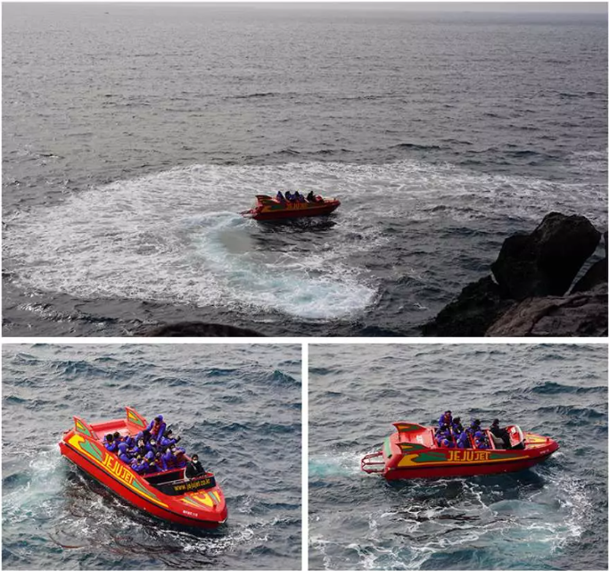 한 번도 경험해보지 못한 짜릿한 해상 레포츠! 빠른 스피드로 회전하며 스릴감을 느끼실 수 있는 제트보트를 탑승해 보세요. 신나게 보트를 타다 보면 제주 대표 관광지 주상절리에 도착하며,
