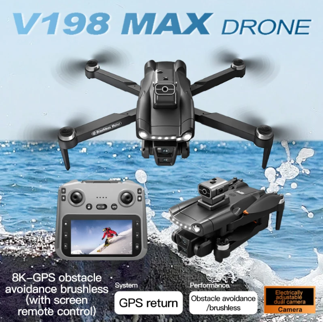 Xiaomi V198 GPS MAX Drone with 8k 전문 HD 카메라 5G WiFi 브러시리스 레이저 장벽 회피 접이식 쿼드콥터의 새로운 기능