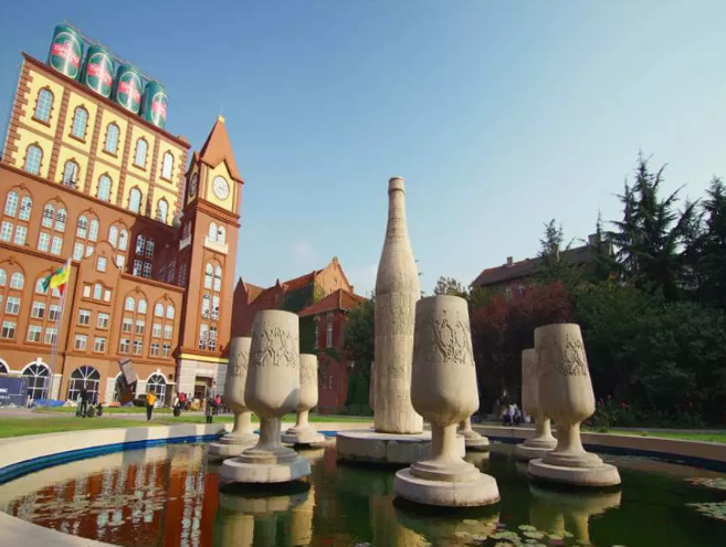 문에 들어서면 가장 먼저 눈에 띄는 것은 광장입니다. 광장 중앙에는 아라비아 숫자 "100"이 새겨진 "100주년 찬가" 조각상이 있는데, 칭따오 맥주 100주년을 기념하기 위해 2003년 8월 15일에 세워졌습니다. "100주년 찬가" 서쪽에는 맥주병과 와인잔 조각상으로 구성된 분수가 있습니다. 광장에는 술의 신 조각상도 있습니다.