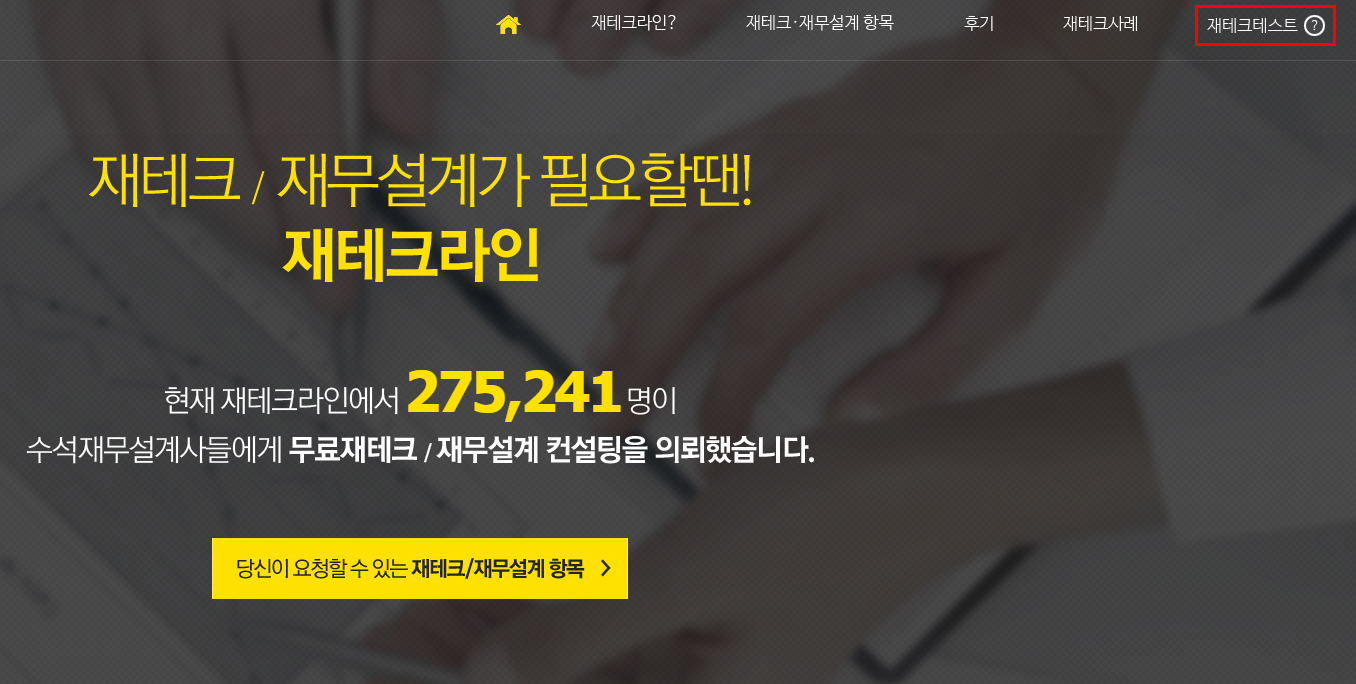 첫 화면 오른쪽 상단에 재테크테스트 라고 있어요.(붉은색테두리)