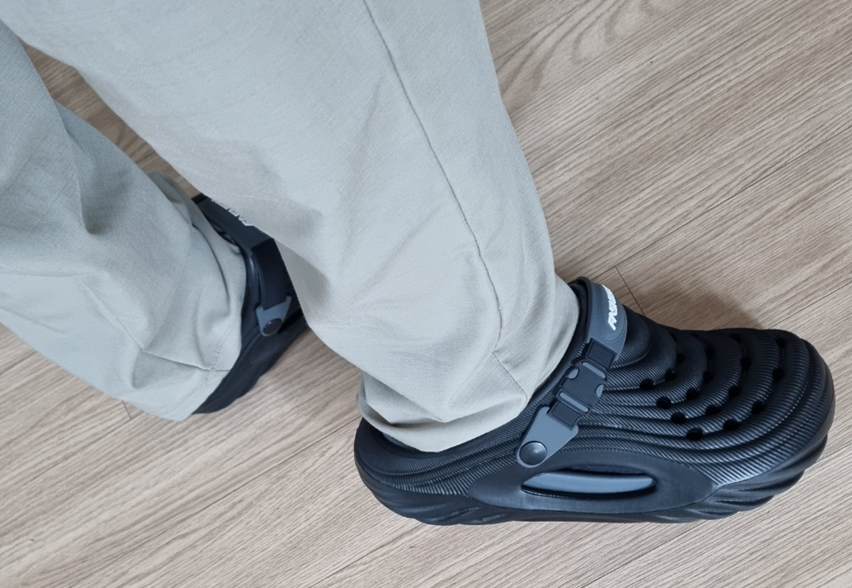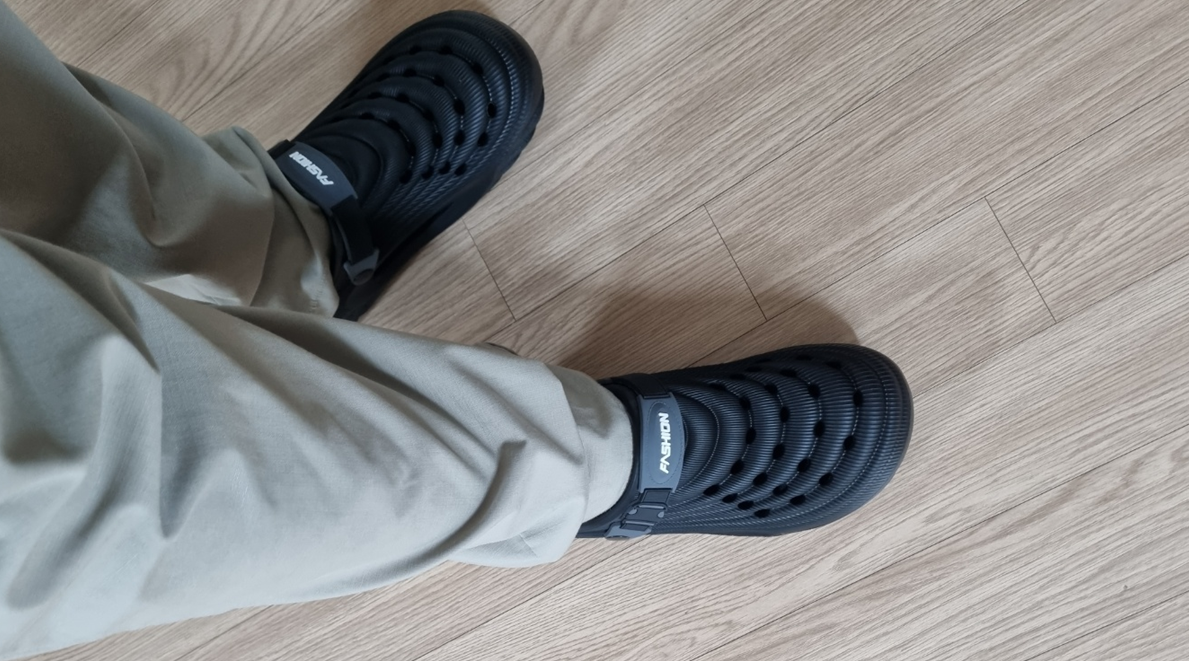 신발의 상단과 밑창은 EVA 소재로 제작되어 내마모성이 우수하고, 장기적인 사용에도 변형이 없는 내구성을 보여줍니다.