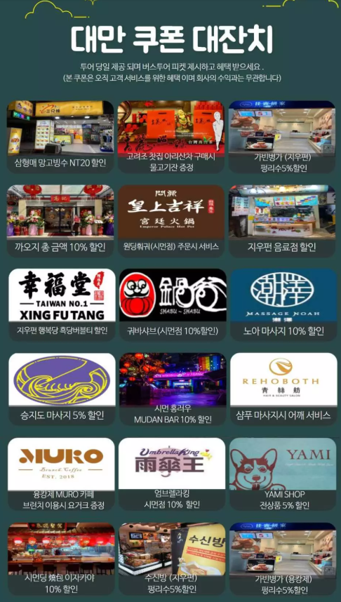 고궁 박물관 한국어 가이드 투어에 참여한 모든 분들께 대만 여행에 필요한 쿠폰을 제공해드립니다. QR코드로 이용 가능하여 더욱 손쉽게 이용가능해요. 알찬 투어에 가성비 혜택도 덤으로 챙겨가세요!