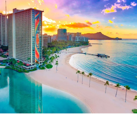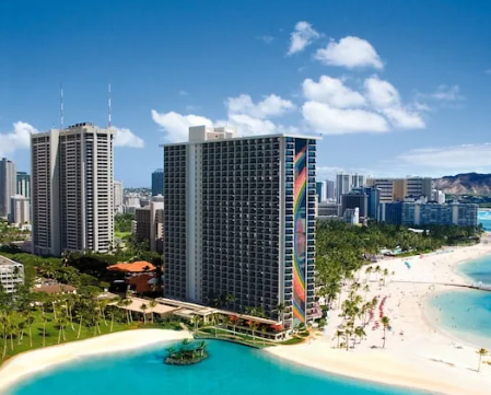 '무한도전 하와이 편'과 '뭉쳐야 뜬다', '우리 결혼했어요' 등 이미 많은 방송에서 소개되어 높은 인기를 얻고 있는 호텔이다. 와이키키 내에서도 손꼽히는 규모로 레인보우 타워를 비롯해 칼리아 타워, 티파 타워 등 총 7개의 타워로 구성되어 있다. 모든 객실에서는 푸른 빛으로 펼쳐진 와이키키 비치를 바라볼 수 있어 전망과 휴식을 동시에 즐기고 싶다면 이 호텔을 적극 추천한다.