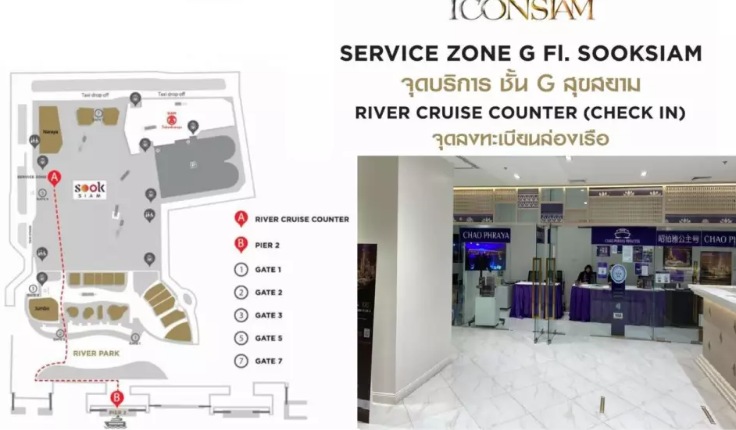체크인 장소: G층 숙 시암 Sook Siam (Service Zone) 나라야 매장 근처 크루즈 체크인 카운터