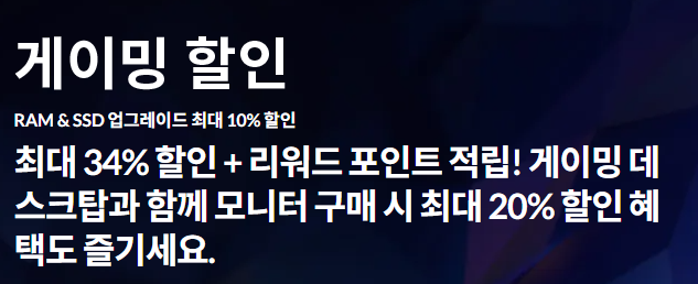 예: 신규 회원 할인, 재고 · 특가 모델 할인, 게임용 / 아카데믹용 특화 구성 등이 있습니다.