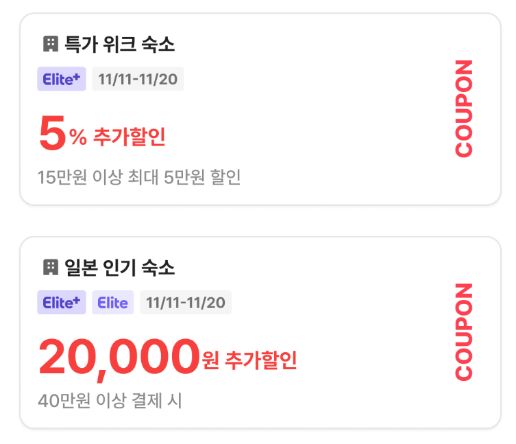 11월 제휴사 전용 쿠폰팩 - 여기어때 이벤트