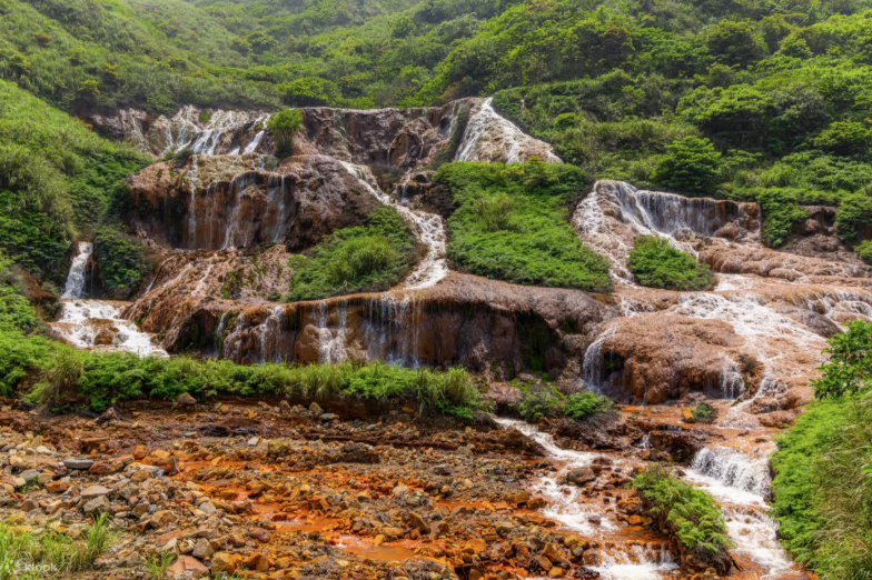 ⛏️ 황금 폭포|산성 광맥에서 흘러내리는 금빛 절경 신베이시 루이팡구 진과스 지역에 위치한 황금 폭포는 북부 타이완에서 가장 독특한 자연과 인문이 만나는 곳입니다. 폭포수는 산비탈 사이로 힘차게 쏟아져 내리는데, 광산 지역 지층에 풍부한 유황과 철 성분이 함유되어 있어 물줄기가 몽환적인 금빛을 띠고 햇빛에 비쳐 더욱 눈부시게 빛나 마치 황금이 쏟아지는 듯한 장관을 연출합니다. 이곳은 일제강점기 중요한 금광 채굴 지역이었으며, 폭포 자체에는 금 성분이 없