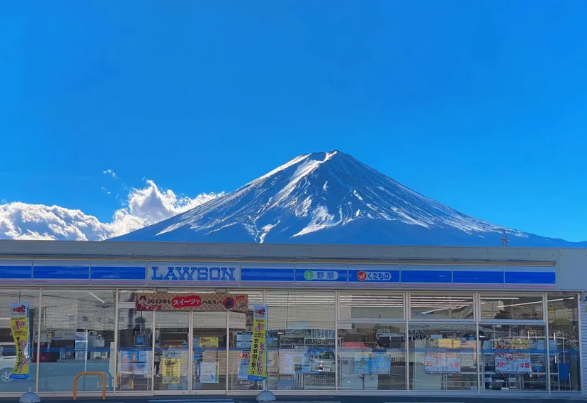 로손 편의점: 후지산 배경으로 사진을 찍을 수 있는 가와구치코의 로손 편의점은 독특한 매력으로 여행 사진 명소가 되었습니다.