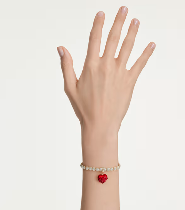 Idyllia Charm, 라운드 컷, 하트, 레드, 골드 톤 플래팅 스와로브스키