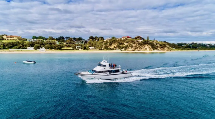 플래그십 선박인 '문레이커'에 승선하면 승무원이 좌석을 찾는 데 도움을 주고 포트 필립 베이로 크루즈를 떠나 멋진 절벽 위의 집과 전용 해변을 지나는 동안 환영 음료를 제공합니다. 소렌토와 포트시.
