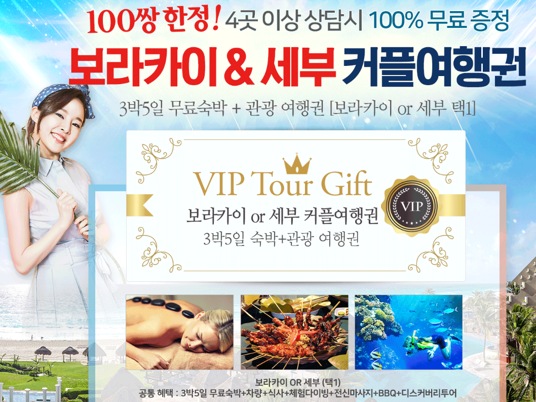 또한 4곳 이상 상담만 받아도 보라카이 & 세부 커플 여행권을