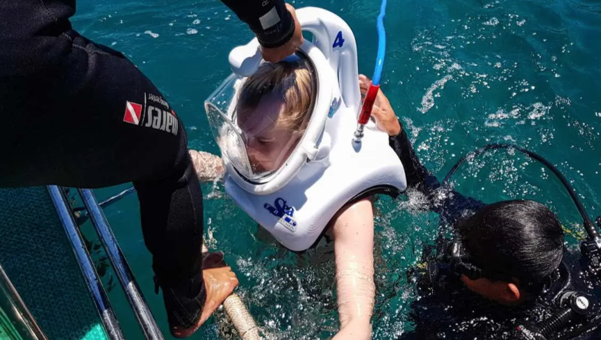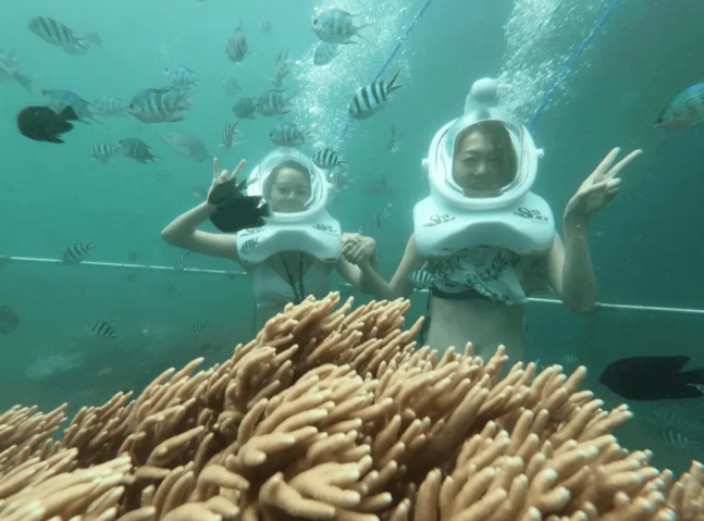 씨워킹(Sea Walker): 수영을 못 해도 OK! 특수 헬멧을 쓰고 바닷속 평지를 걸으며 물고기들에게 먹이도 주고 기념사진도 남길 수 있는 특별한 경험입니다. 헬멧 덕분에 얼굴에 물이 묻지 않아 안경이나 화장도 문제없어요!