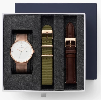 Philosopher - SET Rose Gold | Mesh / Olive Green Nylon / Dark Brown - Nordgreen KR
