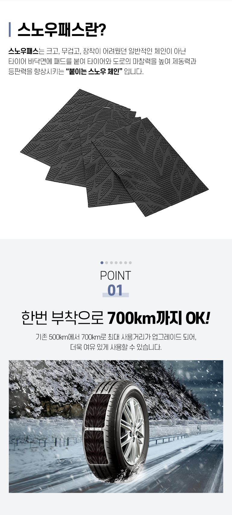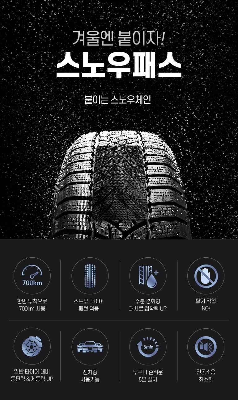 스노우패스는 타이어 바닥면에 부착되어 주행 중에