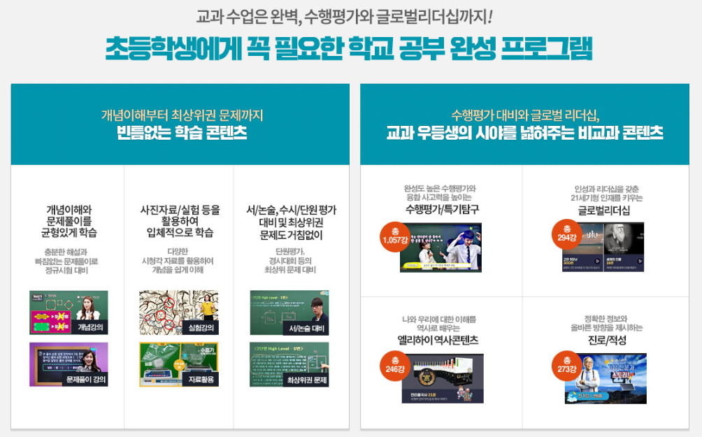 전부 강의가 존재하고 아이의 학교 생활의 시기별 학습 가이드까지
