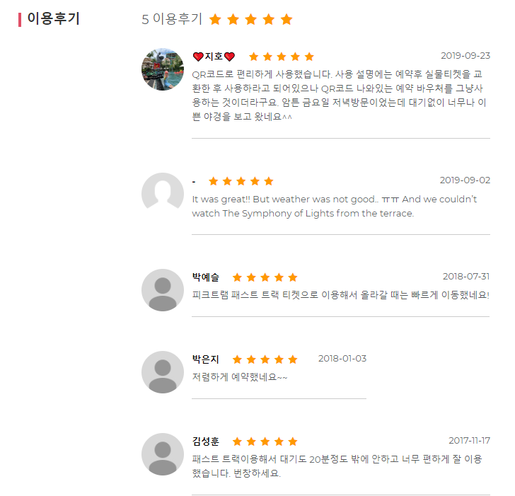 피크트램 패스트트랙 상품 예약을 부탁드립니다.