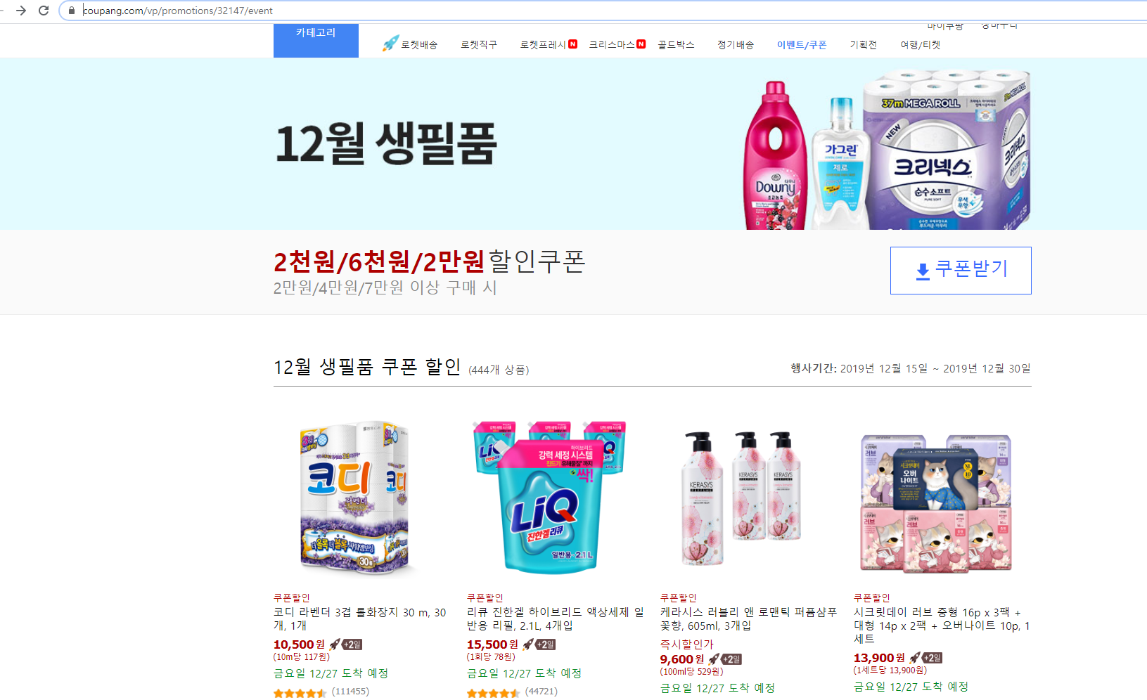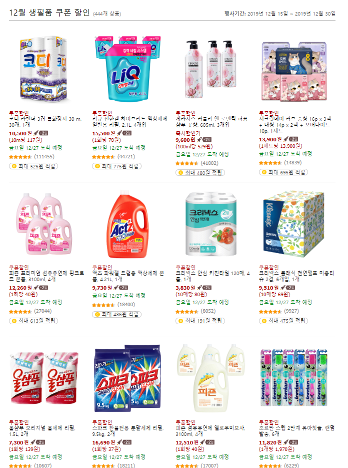 그럼 444개의 할인쿠폰을 받을 수 있는 상품들이 나와요.