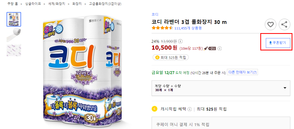 붉은색 테두리 안의 쿠폰받기를 클릭하시면