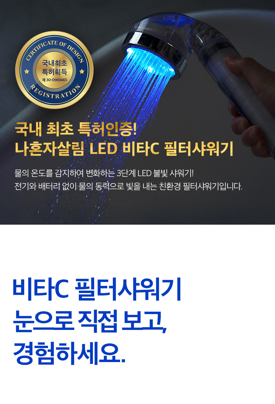 LED 3단 불빛 염소제거 비타C 필터샤워기를