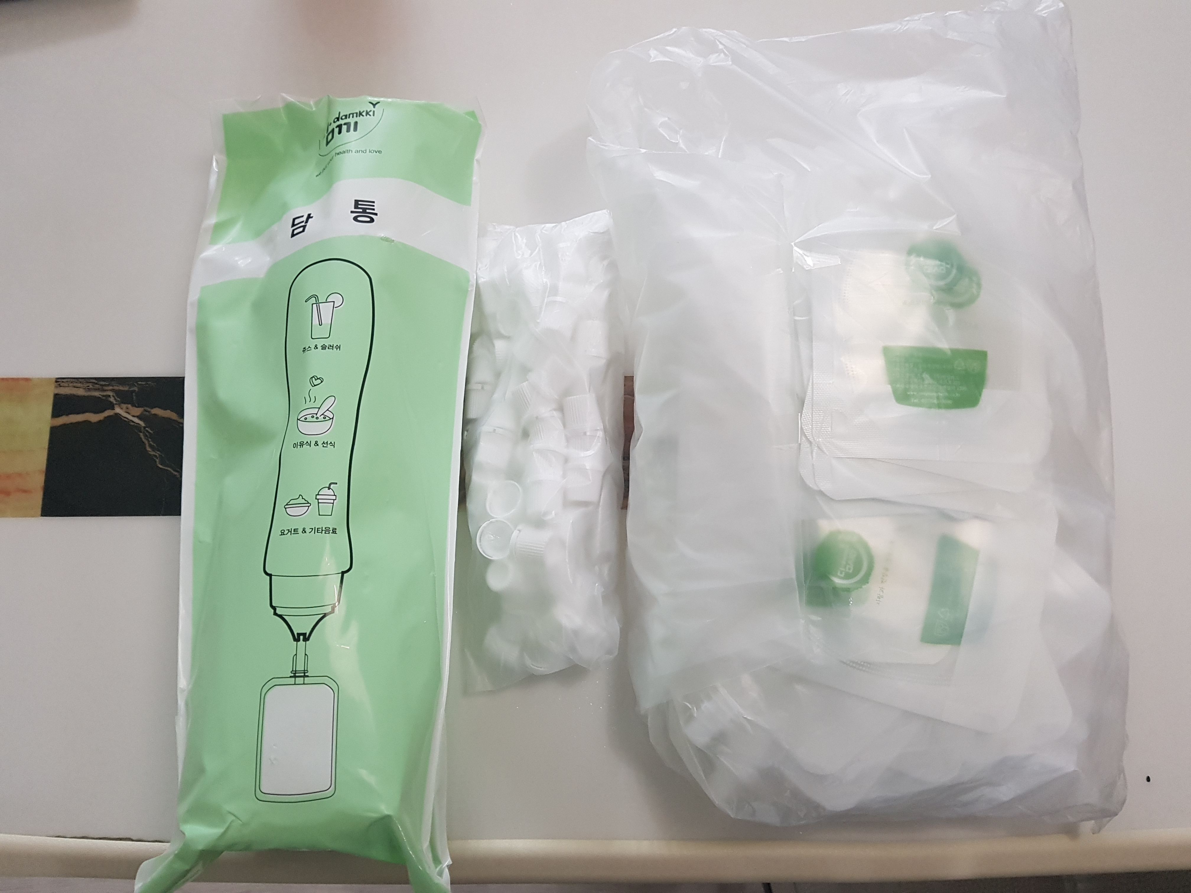 파우치 포장에 특화되어 있는 노즐로 인해서 역류하지 않고 편하게 담을 수 있는 것이 담통에 최고 장점인 것같아요.