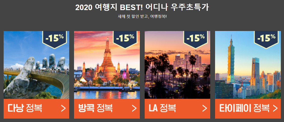 새해 첫여행, 우주최저가! 15% 더블할인까지~