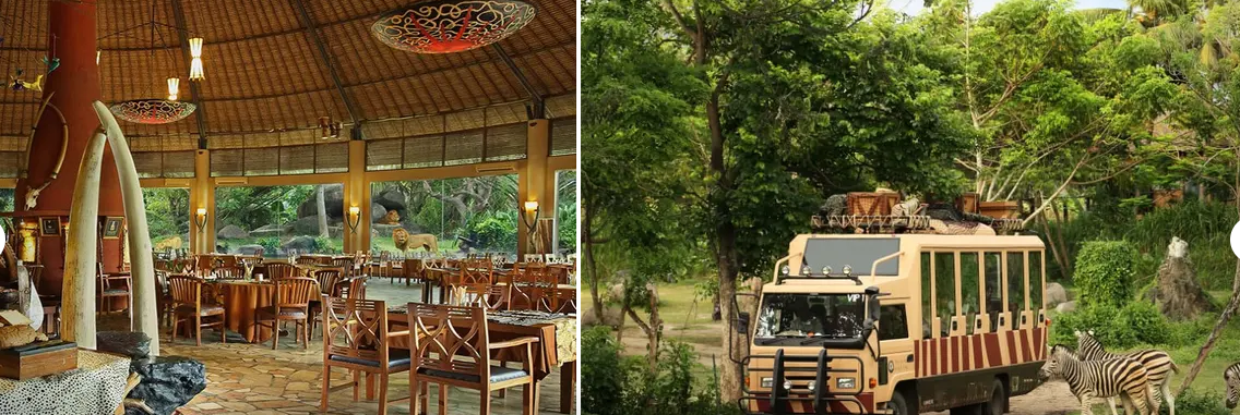 사파리 투어에 참여하여 동물원을 돌아보고 애니멀 쇼를 관람해보세요.