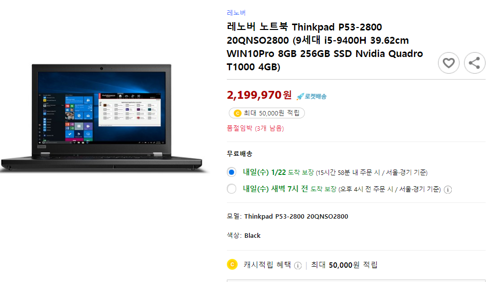 헉!!!그리고 레노버 온라인스토어의 씽크패드 P53은