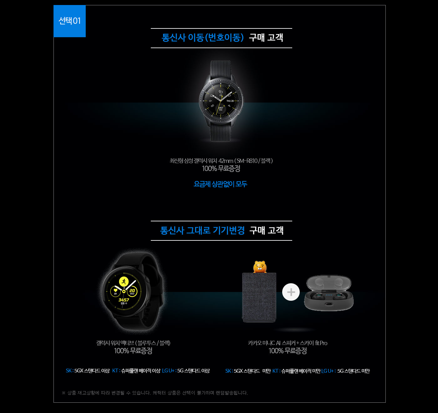 - 2명 이상 개통시 소니 플스 PS4 Pro, 닌텐도 스위치, 삼성전자 갤럭시탭S3 9.7 WiFi, 그래픽카드 지포스 RTX2060 6GB 중 1택