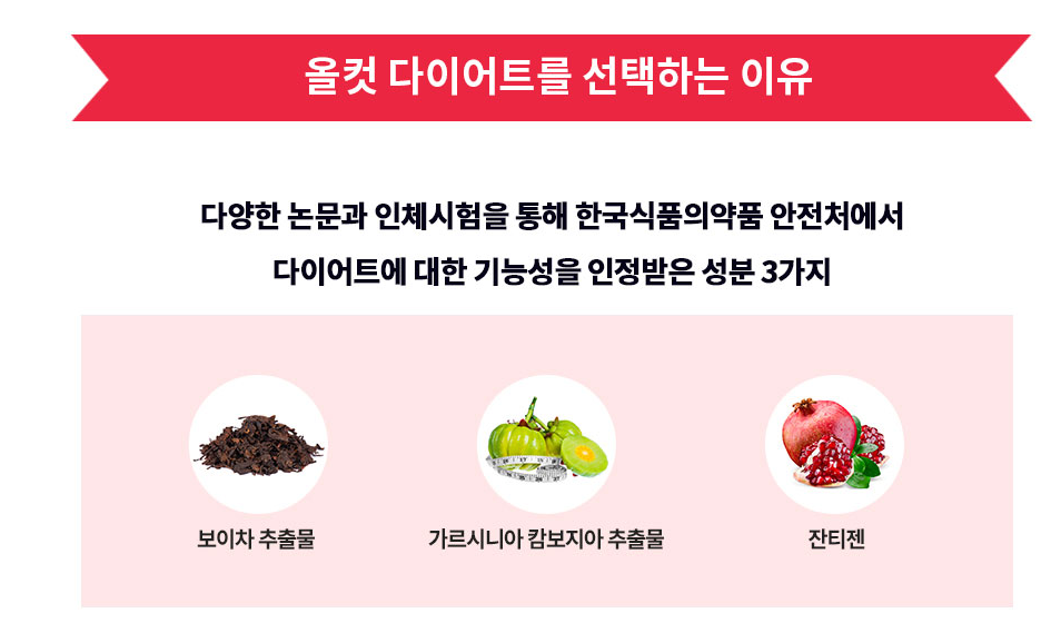 인정받은 성분 3가지 보이차 추출물, 가르시니아 캄보지아 추출물,