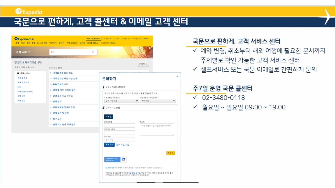 보통 해외여행 예약은 저렴하게 하려면 영어를 잘 했어야 하는데 익스피디아는 국문콜센터를 운영하니 누구나 저렴하게 예약 할 수 있는 장점이 있어요.