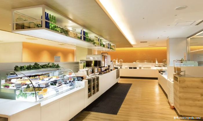 무려 60가지의 풍성한 음식을 제공하는 조식 레스토랑에서는 감자튀김과 빵 등의 서양식 요리부터 타코야키를 포함한 일식까지 제공된다. 투숙객들은 호텔에 머무르는 동안 취향에 맞는 다양한 요리를 맛볼 수 있다.