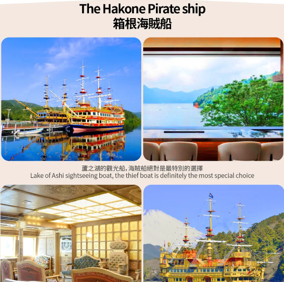 두 번째 정거장: 🚢하코네 해적선 체험: 하코네 관광 해적선은 하코네의 인기 있는 관광 명소인 아시호의 하이라이트입니다! 모토하코네 항구에서 항해를 시작하세요! 거대한 도리이와 후지산, 아시노호의 웅장한 전망을 동시에 감상하실 수 있습니다. (보트 티켓은 개인 비용으로 1인당 1,200엔입니다.)