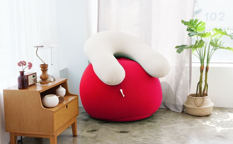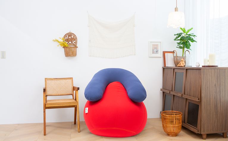 동그란 모양의 빈백 소파로 안정감있게 몸을 맡길 수 있는