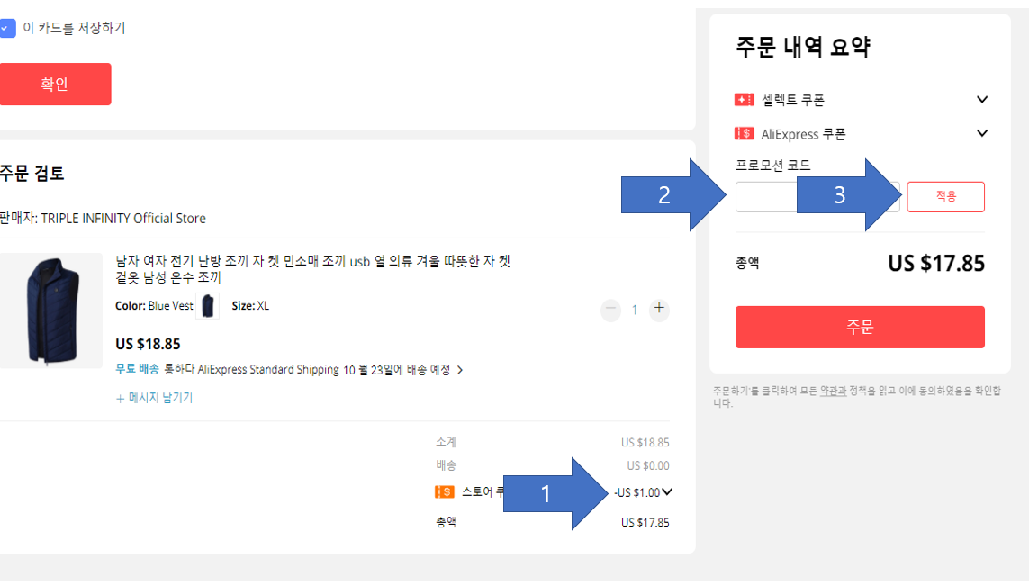10월 쿠폰, 알리익스프레스 프로모션코드 동시사용 하기 + 캠핑, 낚시,야외 활동 할때 좋은 발열조끼 후기