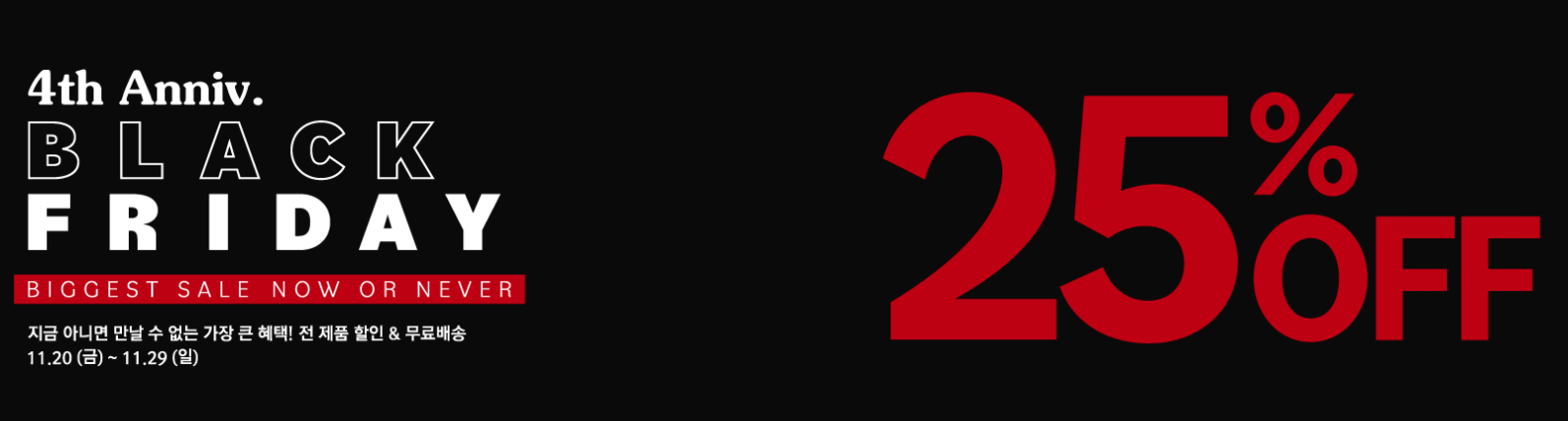 블랙프라이데이를 맞이하여 전제품 25% 할인 뿐만 아니라