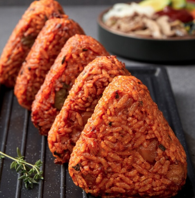 매콤한 맛의 전주비빔 주먹밥이에요.