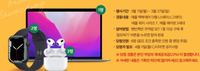 맥북에어 사은품 햇반쿡반 주먹밥 런칭기념 행사 할인코드
