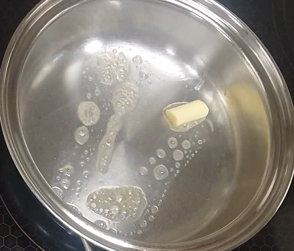 더 맛있게 만들기 위해 프라이팬에 버터를 발라서 만들어봤어요.
