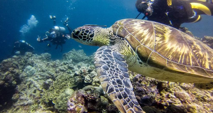 거북이, 정어리, 열대어와 함께 수영을 즐길 수 있는