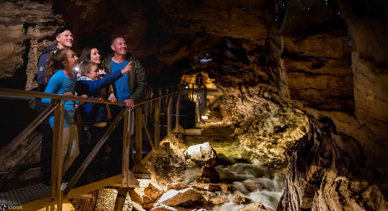 석회암 길을 따라 동굴 내부를 걸어서 둘러보며 종유석 등을 살펴보세요
