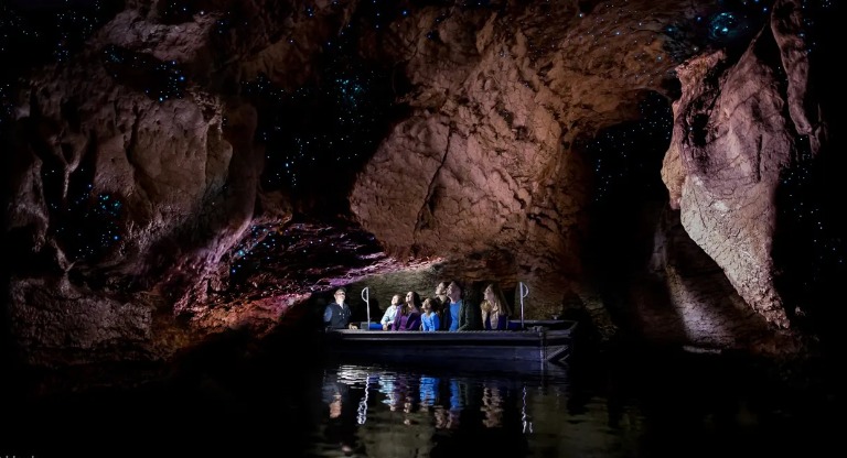 작은 배를 타고 수천 마리의 반딧불이 서식하는 동굴을 방문하세요.