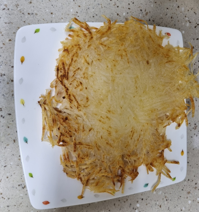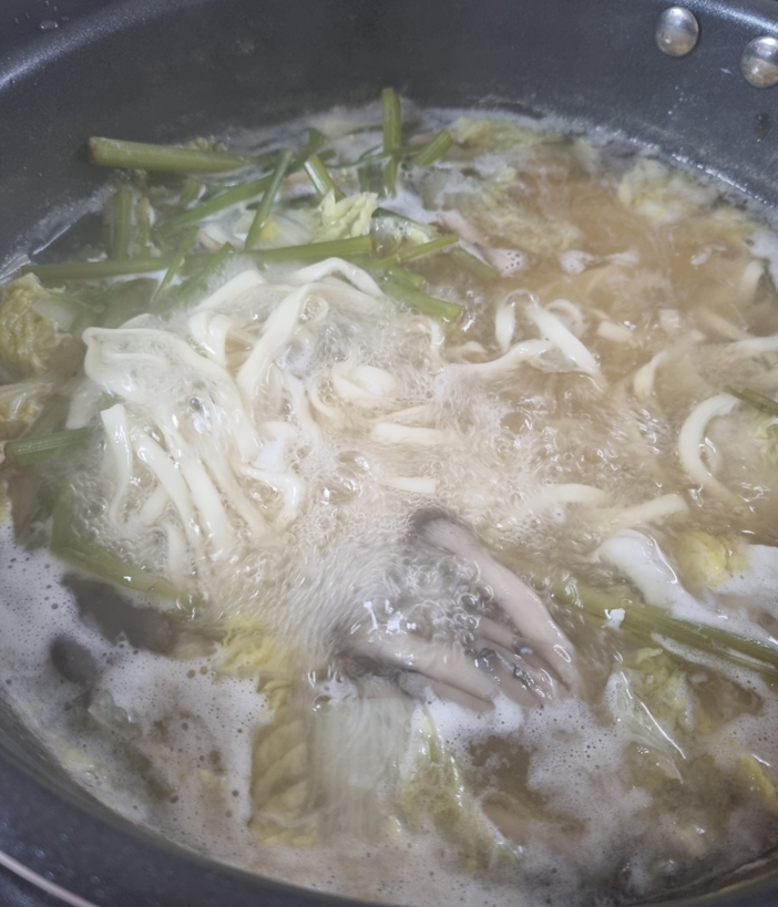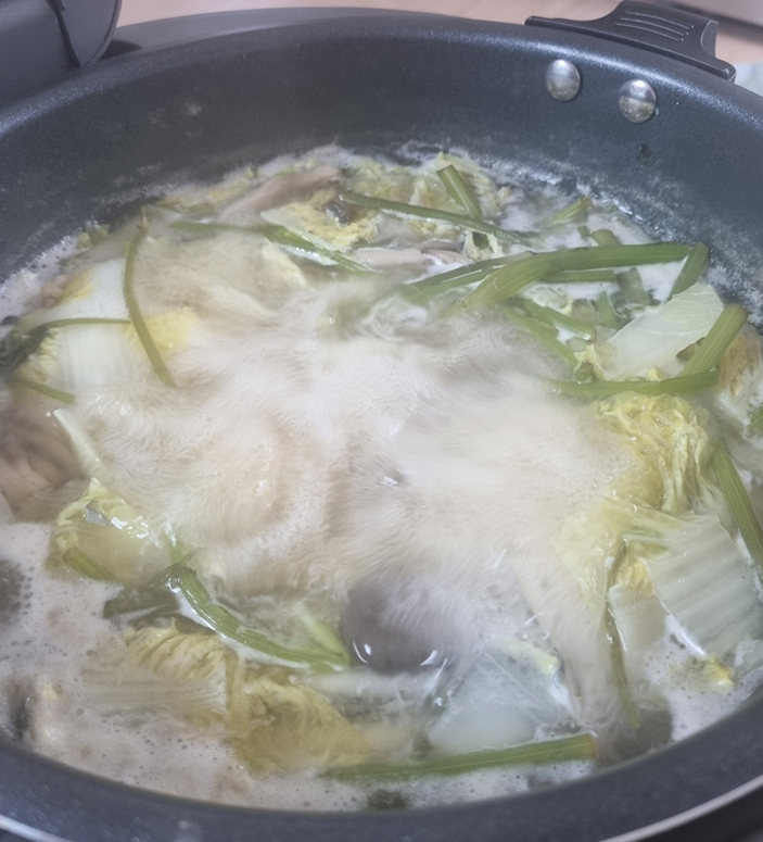 감자전을 다 굽고 나니 육수가 끓어서