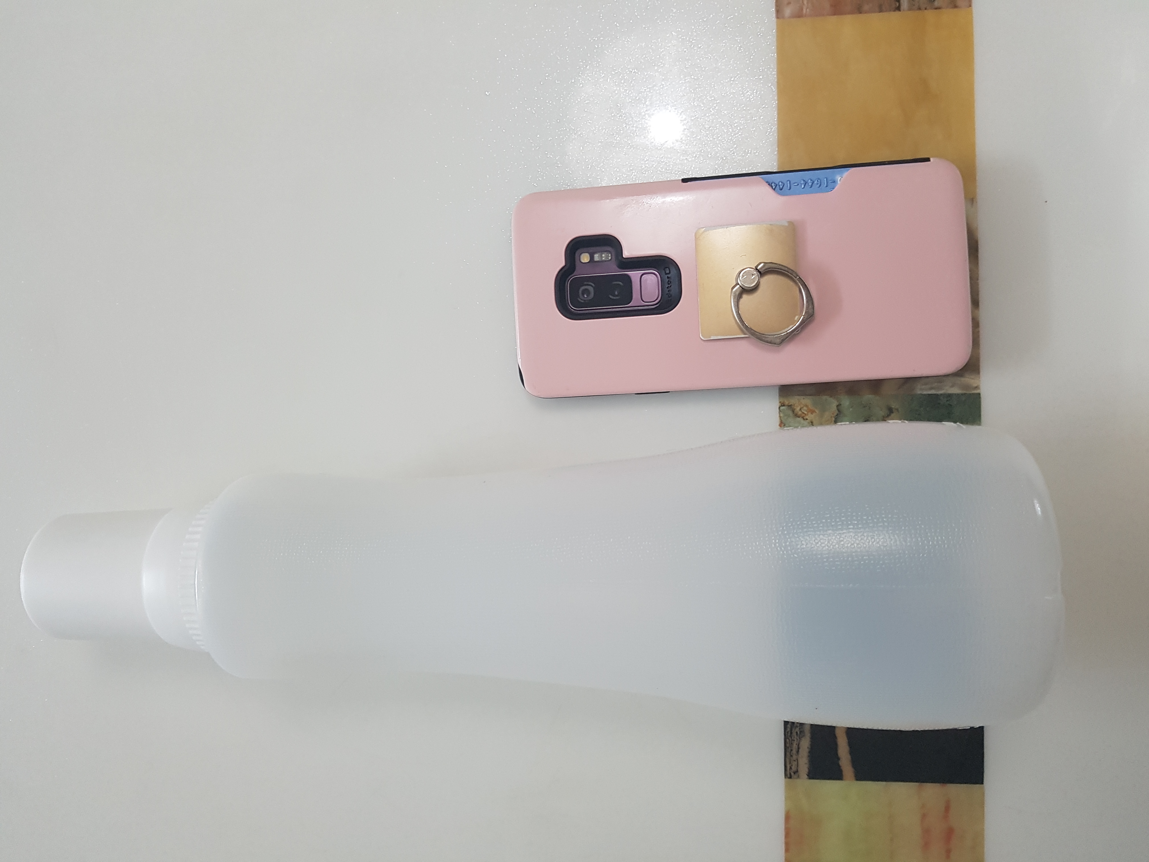 여기에 음료를 담는 거에요. 크기를 알 수 있도록 핸드폰을 옆에 놔봤어요.