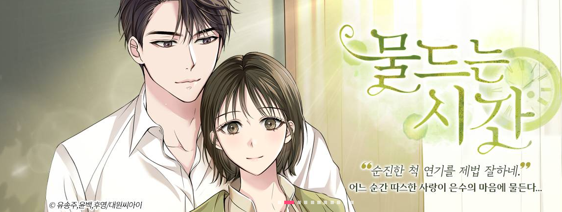 "순진한 척 연기를 제법 잘하네." 은수는 연인인 재하의 친구, 건욱과의 첫 만남에서 그에게 심하게 매도당한다. 더는 참을 수 없어 뺨을 날려버리고 그와는 평생 엮이지 않겠다고 다짐했다. 절대로 좋아할 수 없는 남자였다. 지건욱은. 하지만 불의의 사고로 재하가 떠나버리고 은수가 완전히 무너져 내렸을 때 그녀를 다시 일으켜 세운 것은 건욱이었다. 평생 그를 원망하며 살 줄 알았는데, 어느 순간 따스한 사랑이 은수의 마음에 물든다. *원작 : 유송주 [웹소설] 물드는 시간
