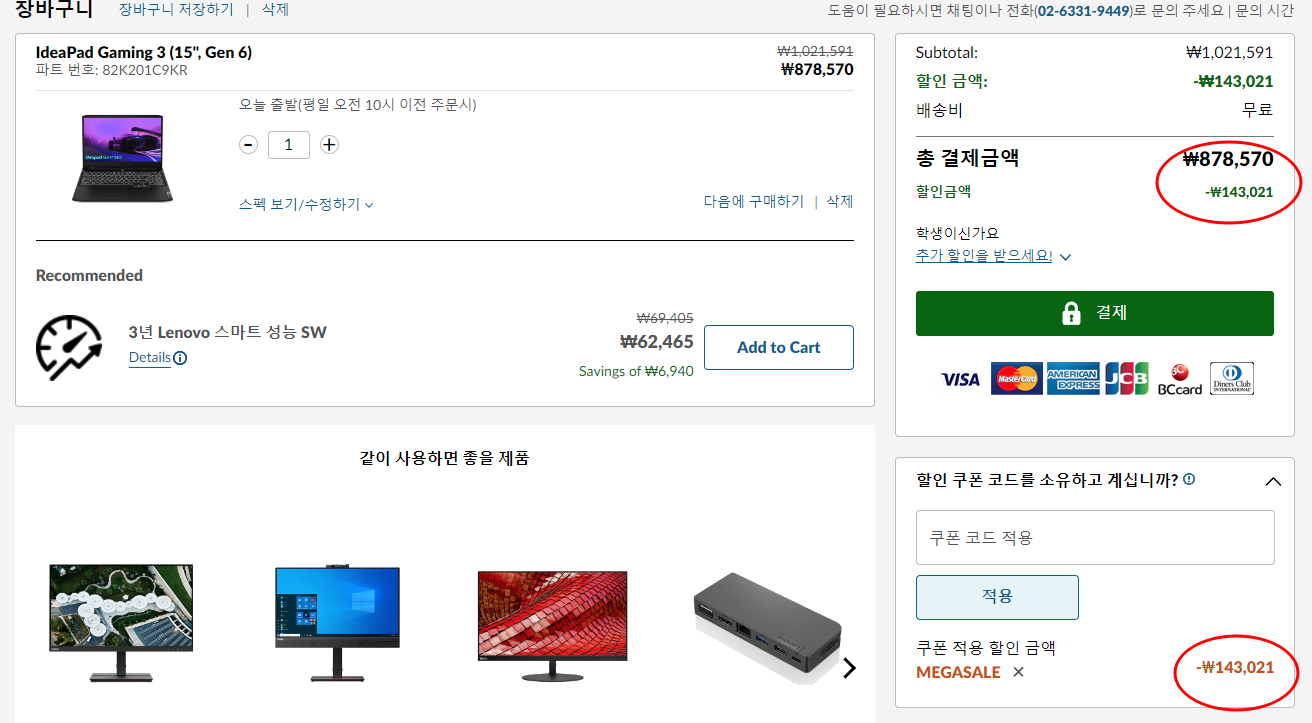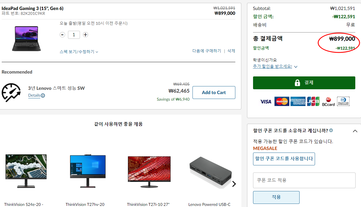 - 할인율 : 레노버 온라인 스토어(일반/프로/에듀스토어)에서